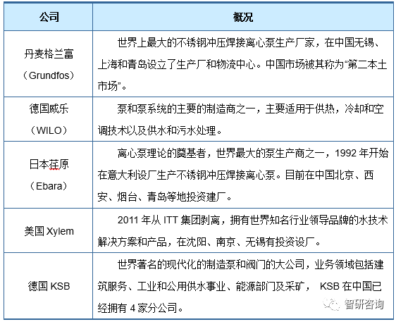 從全球泵行業的企業格局來看,全球泵主要生產企業有丹麥格蘭富、日本荏原(Ebara)、美國ITT、德國威樂(WILO)、德國KSB等,可以認為,發達國家的泵市場基本被少數幾家寡頭壟斷,市場集中度很高。