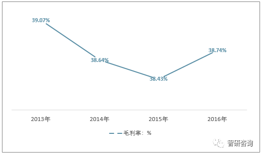 2013-2016年美國Xylem毛利率走勢圖(單位:%)