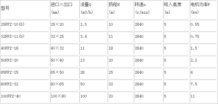 塑料耐酸自吸泵性能參數(shù)