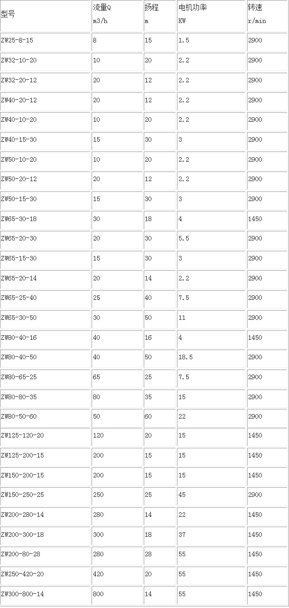 ZW不銹鋼自吸排污泵性能參數(shù)