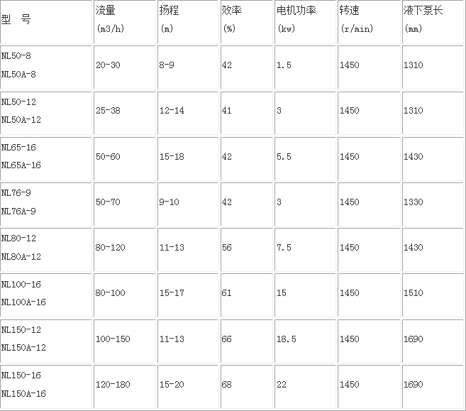 NL型污水泥漿泵可垂直或傾斜使用,占地面積小,蝸殼需埋在工作介質中工作,容易啟動,不需弓I水,旋轉方向應從電機尾部看是順時針方向工作。
