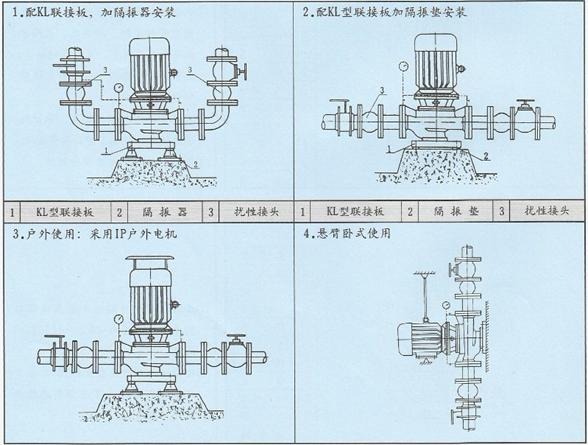 6、ISG離心泵分硬性聯(lián)接安裝和柔懷聯(lián)接安裝兩種(見(jiàn)聯(lián)接方式)。