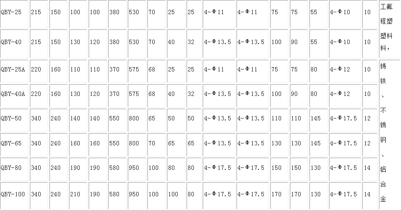 QBY氣動(dòng)隔膜泵性能參數(shù)
